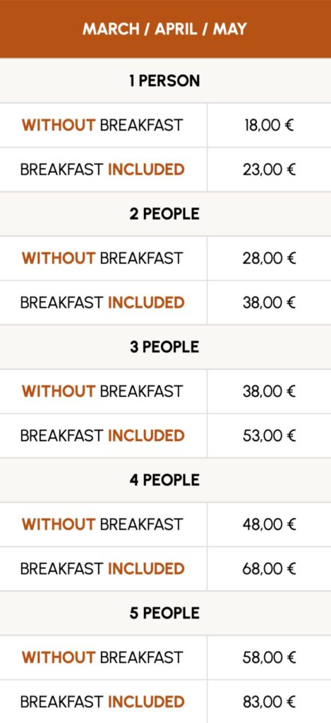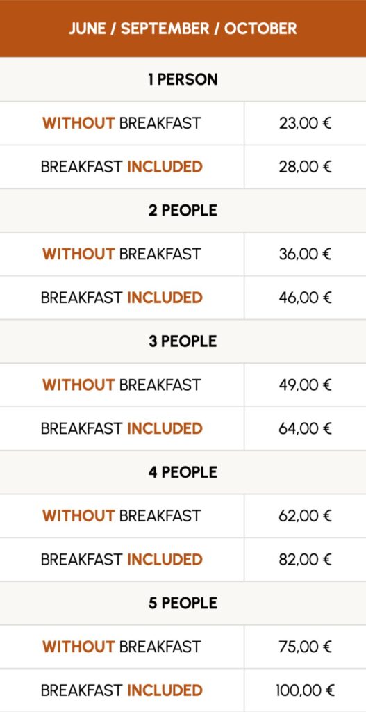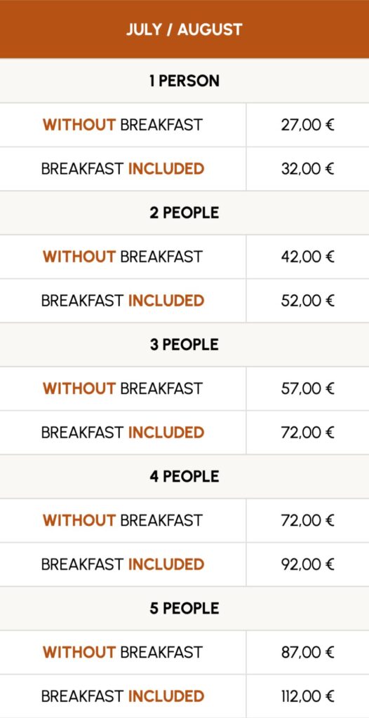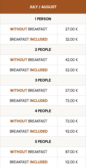 - The rates include: pitch with electricity hookup, sanitary facilities with hot showers, and tourist tax.